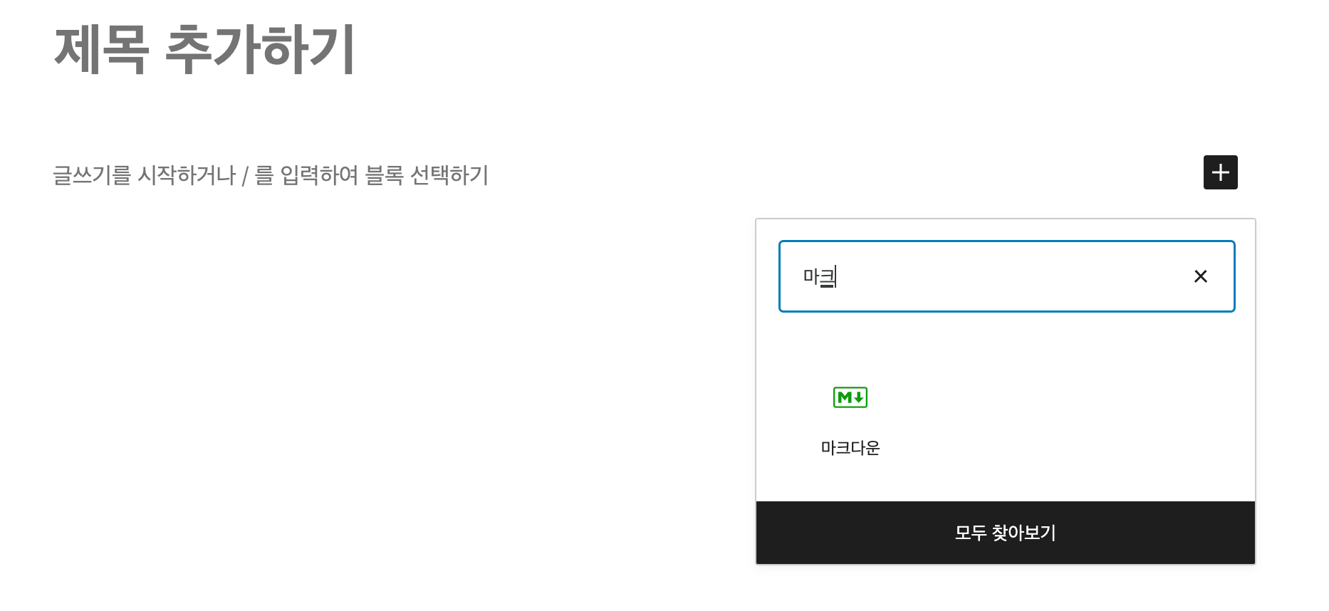 워드프레스의 글쓰기에서 새로 추가하기 를 클릭하고, 마크다운 블록을 추가하면 됩니다.